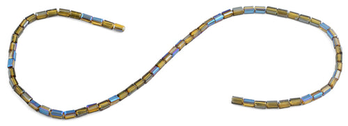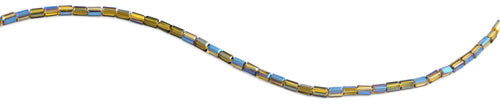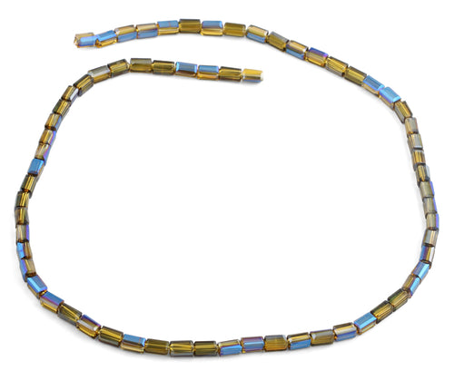 3X6mm Yellow and Blue Rectangle Chinese Cut Crystal Beads. This strand measures 15.5" in length.