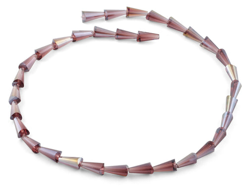 6x12mm Clear Purple Cone Chinese Cut Crystal Beads. This strand measures 15.5" in length.