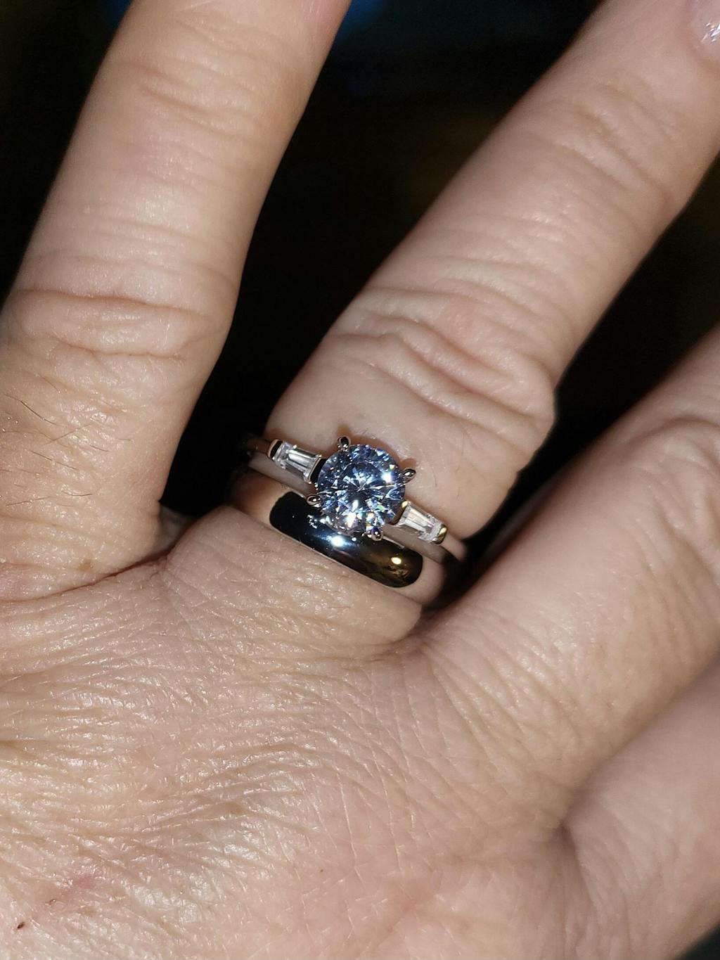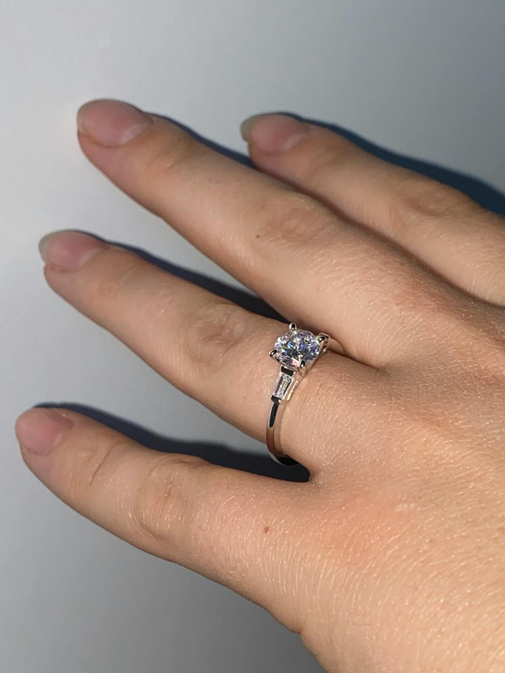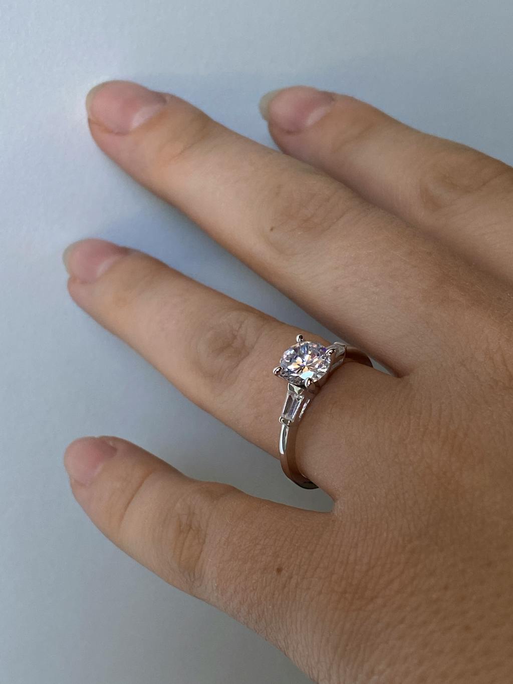- Stone shape: round (center) & baguette