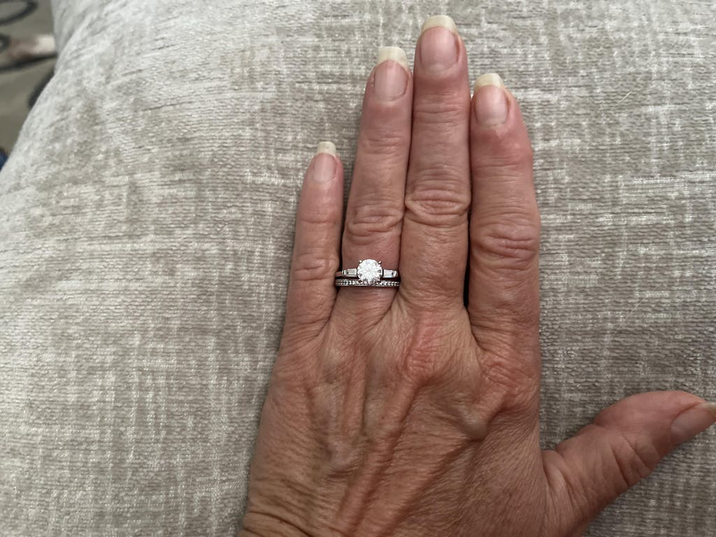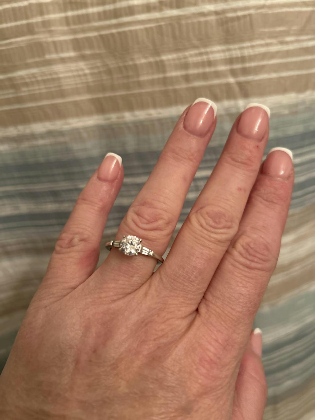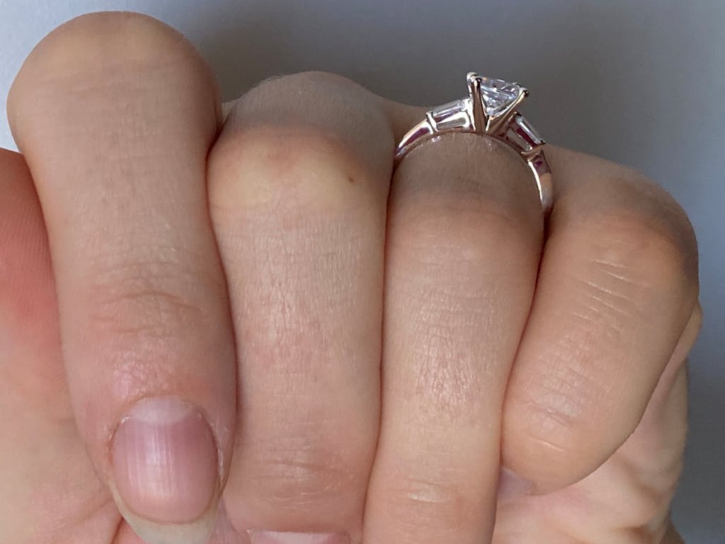- Stone shape: round (center) & baguette