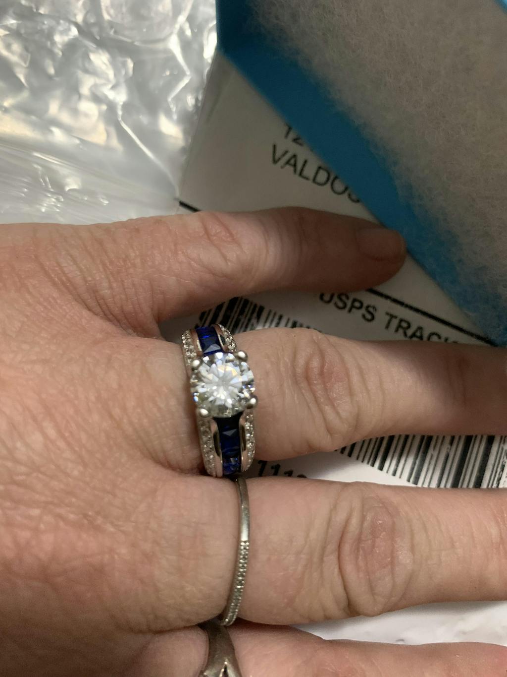 - Stone material: blue & clear cubic zirconia