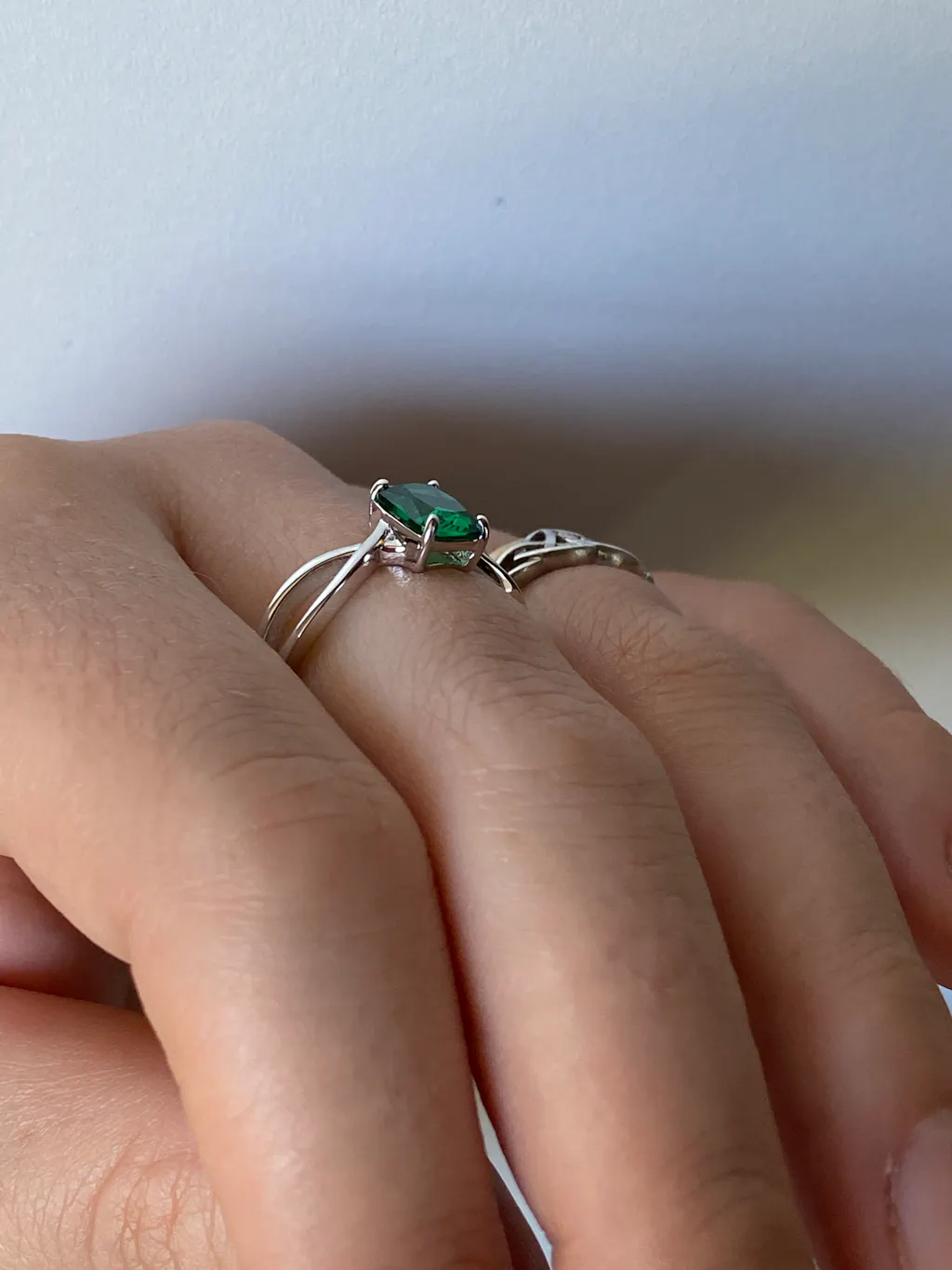- Stone shape: emerald cut