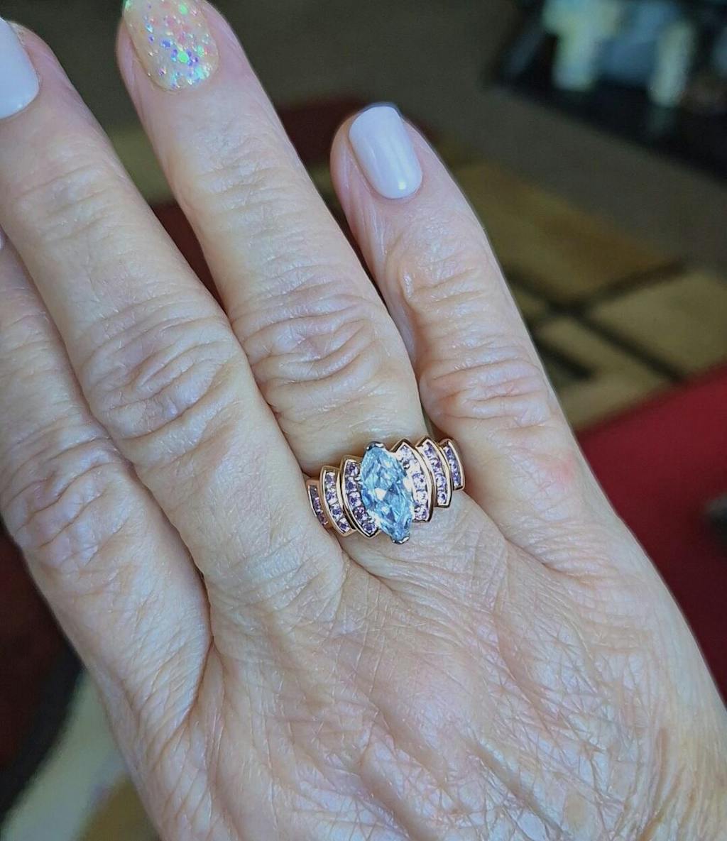 - Stone material: pink & clear cubic zirconia
